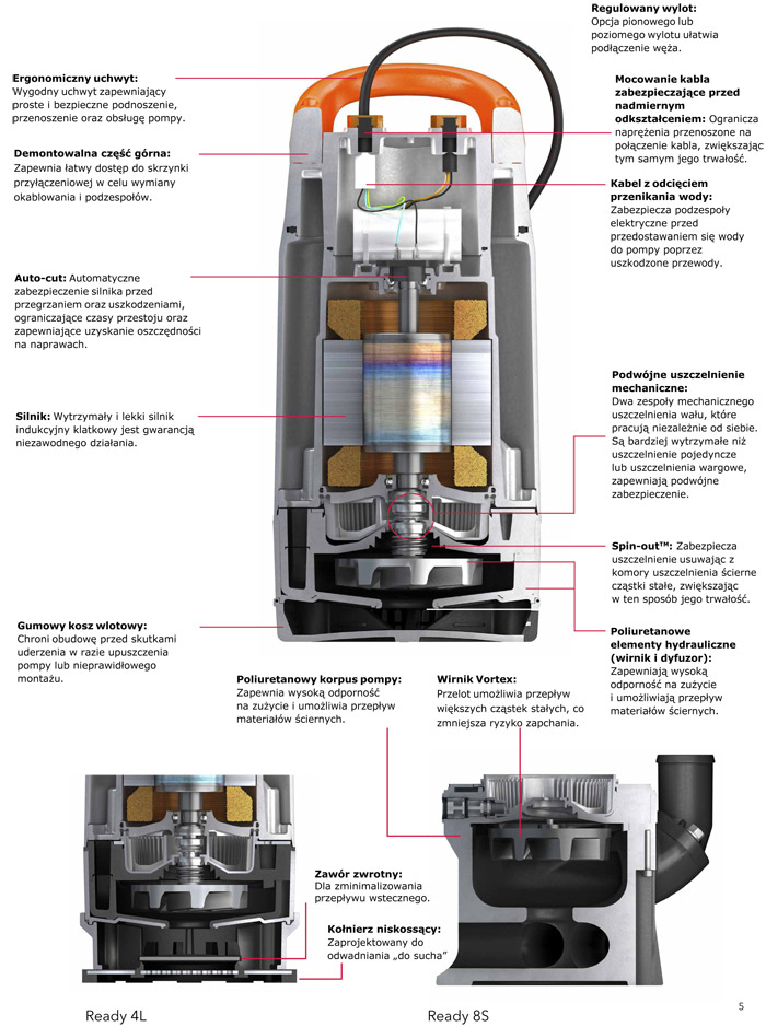 Producent pomp zatapialnych Flygt zdążył już nas przyzwyczaić do tego, iż dostarczane przez niego urządzenia charakteryzują się nowatorskimi rozwiązaniami. Pompy zatapialne marki Flygt zapewniają użytkownikom bardzo dobre warunki eksploatacji oraz serwisowania. W tym konkretnym przypadku, pompy zatapialne Flygt Ready, wyróżniają się na tle konkurencji następującymi cechami: